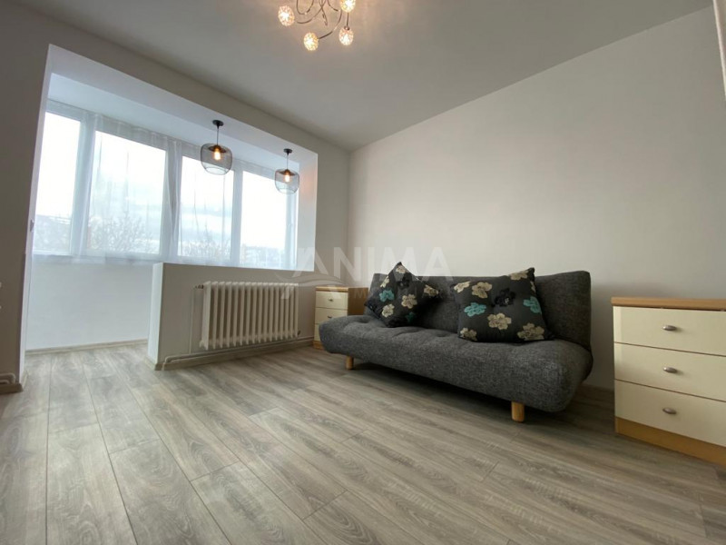 Compartimentarea locuintei este astfel: hol, bucatarie, living, dormitor, baie si balcon inchis. Apartamentul se inchiriaza complet mobilat si utilat modern la pretul de 450 euro/luna.